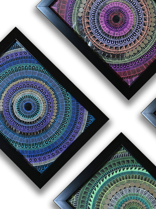 Neon Harmony – Set of 4 Mandala Art 23x17cm